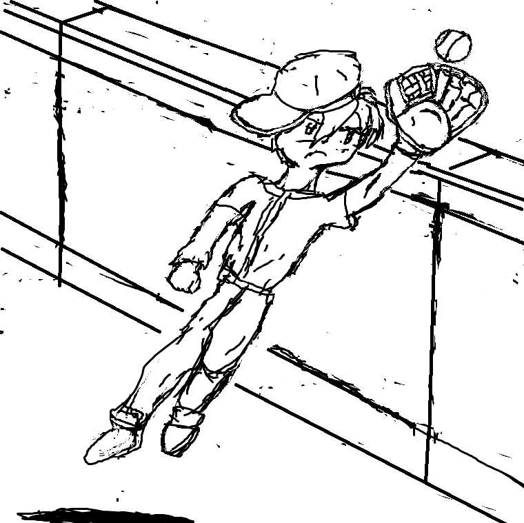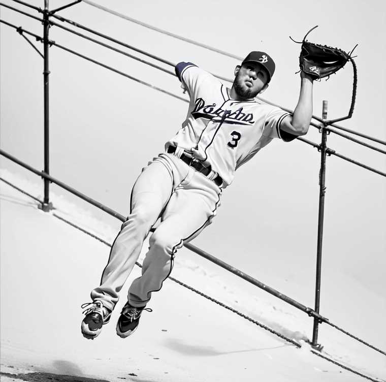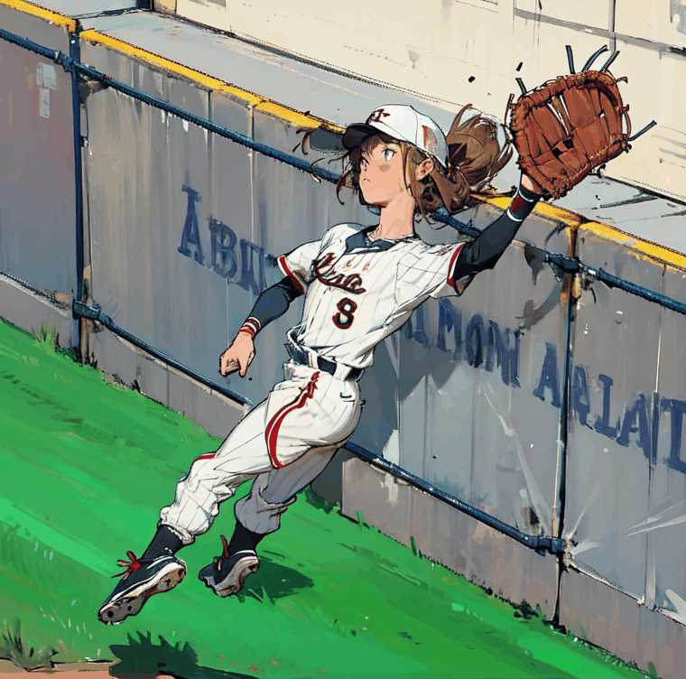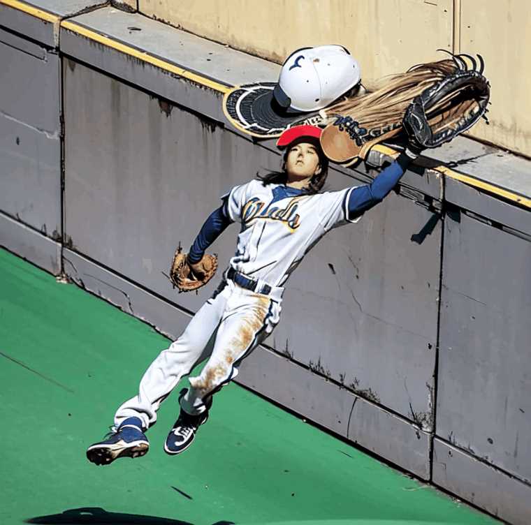 外野の守備の絵というとダイビングキャッチかフェンスギリギリのホームラン性のボールのキャッチかと。