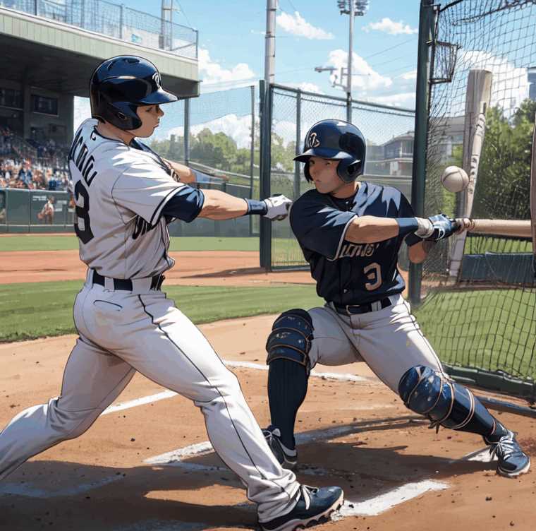 バットを持っている絵が出るのは、学習元の絵に引きずられているのかな。野球はバットで打つ競技だから打者の画像を沢山あって学習したみたいな。